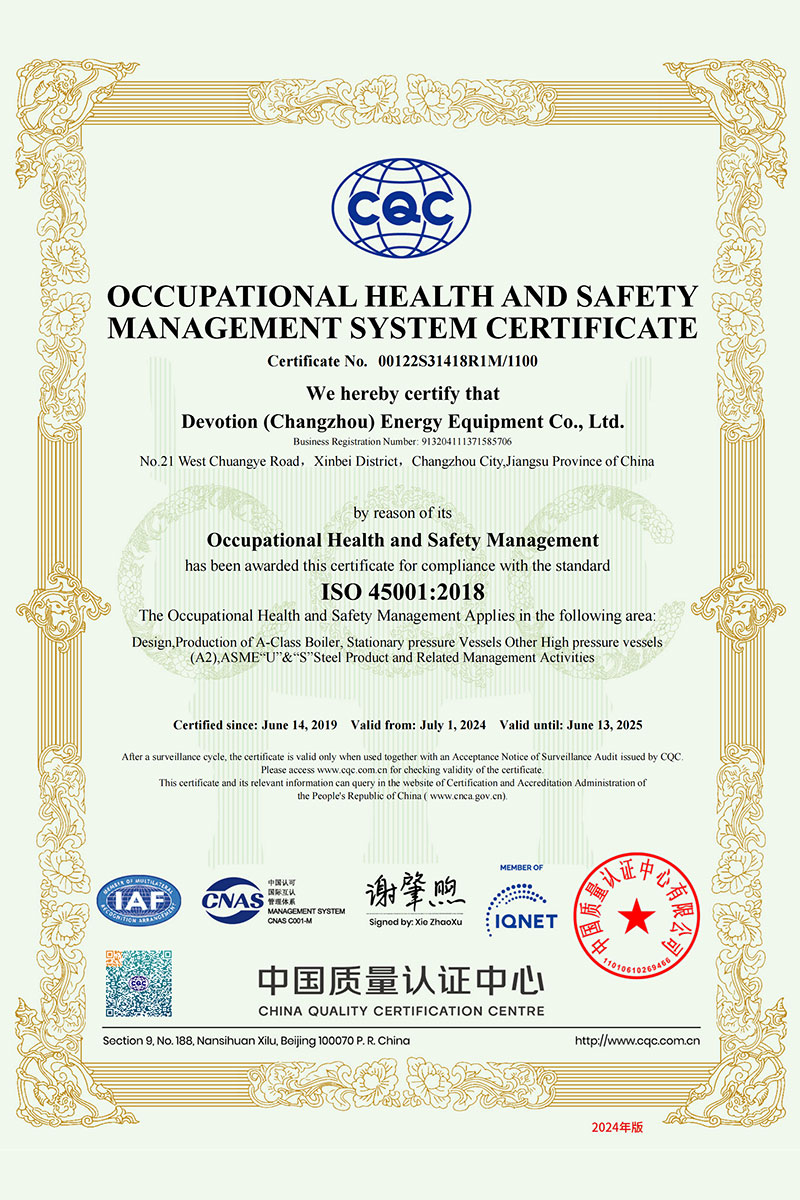 Сертификат сертификации системы менеджмента охраны труда и техники безопасности на английском языке